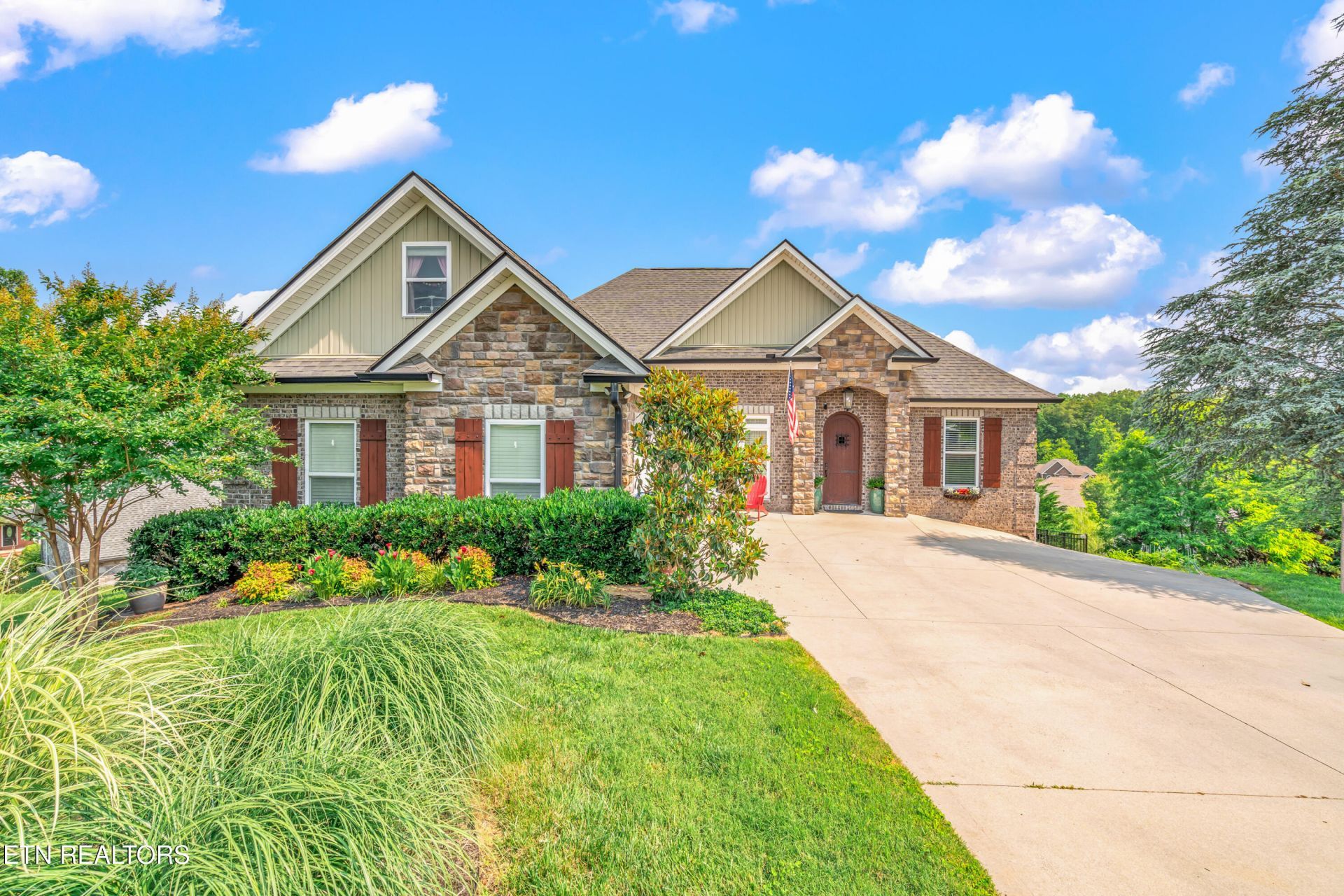 Welcome to a custom-crafted home where charm and high-end comfort meet in the heart of Hardin Valley. Thoughtfully designed and beautifully upgraded, this home stands apart from typical new construction with rich architectural detail and intentional finishes throughout. From the moment you arrive, the striking mahogany front door with old-world styling and a charming peep window sets a warm, inviting tone. Inside, you're greeted by an open and airy floor plan featuring true 3/4'' hardwood floors across the main living areas, elegant arched openings, and soaring 12-foot ceilings in the great room and office or dining space. Every bedroom is finished with trey ceilings, adding depth and character throughout. The great room is drenched in natural light from oversized windows and anchored by a stunning wood-burning stone fireplace, creating the perfect setting for cozy evenings or lively gatherings. The chef's kitchen is both functional and beautiful, showcasing custom cabinetry with soft-close drawers, granite countertops, and a spacious island ideal for gathering. Highlights include a stainless-steel refrigerator, apron-front sink, 5-burner cooktop with a custom wood hood, and premium appliances--all seamlessly connected to the great room and outdoor deck for effortless entertaining. The dining room offers flexibility as either a private office or a sun-filled dining space. The primary suite is a true retreat, featuring a spa-like walk-in tile and granite shower with preset temperature controls, granite countertops, and generous closet space. Each bathroom throughout the home has been consistently upgraded with granite finishes, creating a cohesive, elevated feel. The main level offers a split-bedroom layout with two guest bedrooms and a full bath on one side, and the private primary suite on the other. A hidden upstairs laundry in the mudroom--tucked behind built-ins and coat hooks--complements the additional lower-level laundry, giving you two convenient laundry areas. Upstairs, a versatile bonus room offers endless possibilities as an additional bedroom, media space, or playroom. Downstairs, the fully finished walk-out basement expands your living space dramatically. It includes a large bedroom, full bath, a home theater with stadium seating, and a rec room with a wet bar that could easily convert into a full kitchen. With its own private entrance, this level is ideal for an in-law suite, guest quarters, or even multi-generational living. A second garage provides the perfect flex space for a gym, workshop, or extra storage. Additional features include: Tankless water heater, Central vacuum system with retractable hoses, Walk-in attic storage (with potential to finish for more living space), Reverse osmosis system and whole-house water filtration/softener, HVAC replaced in 2021 with UV light. Outside, the home sits privately on a cul-de-sac lot with one of the best views in the neighborhood, complete with aluminum fencing, a secondary concrete walkway, and a bricked patio perfect for grilling or unwinding. Residents also enjoy access to a community pool and clubhouse, all in an unbeatable location. This home isn't just a place to live--it's a place that adapts to you, with character, flexibility, and thoughtful design at every turn. Come experience it in person--you'll notice the difference immediately.