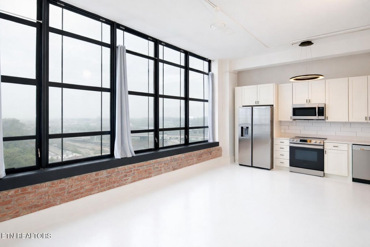 Enjoy urban living in the heart of downtown Knoxville at 116 S Gay St #905, a 2-bedroom, 1-bath loft in the iconic Sterchi Lofts located on the 100 block of the historic Arts District of Downtown. This modern industrial condo features an open floorplan with high ceilings and a seamless flow from the updated kitchen into a large, light-filled living area anchored by oversized industrial windows showcasing stunning downtown sunsets. The kitchen offers modern cabinetry, Spanish Rocca tile backsplash, stainless steel appliances, and a built-in wine fridge--perfect for entertaining. Both bedrooms provide flexibility for guests or a home office, while the primary bedroom captures elevated city views that overlook downtown Knoxville, great for viewing holiday lights and parades. This property puts you steps from the best highlights of downtown living like Market Square and the Old City. Conveniently located near top-rated restaurants, coffee shops, nightlife, and entertainment venues like the Tennessee and Bijou Theatres. Enjoy easy access to sporting events, festivals, and everything Knoxville has to offer, all within walking distance. Whether you're searching for a primary residence, second home, or investment opportunity, this property delivers the ideal blend of location, lifestyle, and historic character. **Buyers to verify sq ft, taxes and HOA dues.