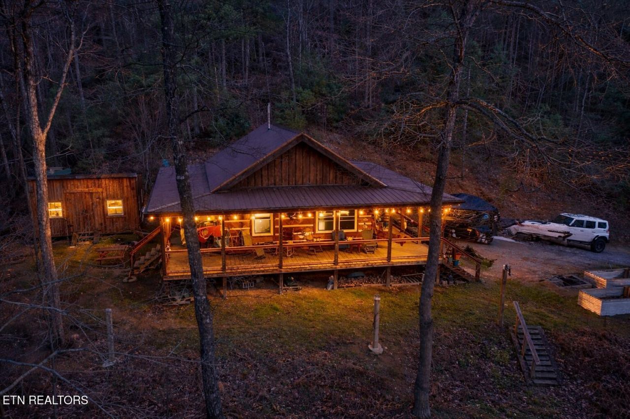 East TN Log Home nestled in the Appalachian Mountains with three sides of the property joining The Cherokee National Forest! Privacy and Tranquility abounds at this gated mountain retreat with beautiful mountain views and ''room to roam'' on 12.57 acres! Step inside this well built, green energy efficient Log Home into an open floor plan featuring 20' Cathedral ceilings throughout the home with beautiful tongue and groove ceilings and hand hued wooden beams! A loft overlooks the kitchen and dining area providing an area for additional storage with a custom crafted ladder for easy access. A warm and quaint 98% efficient wood burning stove adds comfort and ambiance to this TN mountain home while a 1.5 ton mini-split is available if needed. Home is wired with an automatic throw over switch should new homeowner choose to install solar panels. The kitchen features granite countertops, custom cabinetry, and nature views from every window! Sustainable bamboo flooring is throughout the home with tile flooring in the bathroom. New high efficiency windows were installed in 2025. Most of the furniture (excluding family room furniture) can remain including a massive bookcase which pivots to reveal a secret walk-in pantry! The great room is open to the kitchen/dining area and is positioned to take advantage of the gorgeous sunsets! With so much nature around, it beckons you to come outside and relax on the covered wrap around porch where you can sit back and enjoy the environment and the birds from the rocking chairs and porch swing or relax in the new (2024) 8 person hot tub tucked off to the side of the porch as you take in the most amazing sunsets East TN has to offer! The property has raised vegetable gardens, established perennial herbs, and an orchard which includes 6 apple trees, 3 blueberry bushes, 3 raspberry bushes, blackberry bushes, 10 grape vines, a fig tree, tart cherry tree, ever bearing strawberries, asparagus and 4 prize rose bushes are right off the front porch! Owner says the newer lawn mower can also remain and his tractor with box blade is negotiable. Out back, you will find a 14x20 workshop thoughtfully built with dimensional lumber for crafts and hobbies. This mountain home has a deep water well which the owner states is fantastic! The possibility exists for another home to be built on the property that would be located just up the hill from the existing home which has the most breathtaking mountain views! The POA annual dues provide maintenance for the private roads, ditches, and mowing throughout the year. Although you have the feeling of living ''off of the grid,'' you are just 15 minutes to the Hartford exit and another 5 minutes to Newport for shopping and dining. The Pigeon River and Big Creek are minutes from this property where you can take advantage of river rafting in the mountains! You are just minutes from the Appalachian Trail, Max Patch, and Hot Springs NC. You are less than an hour away from Dollywood, Pigeon Forge, Gatlinburg, and Douglas Lake for entertainment, shopping, and fine dining. Hunting is permissible in the Cherokee National Forest adjacent to this property. A large community pond is close by (not on this property) where the owner fishes and has caught large bass and bluegills. This mountain oasis awaits you! Come on Home to Tennessee! All information is deemed reliable; however, buyers and buyer's agents are advised to verify all information as it was gathered from public records and owner.