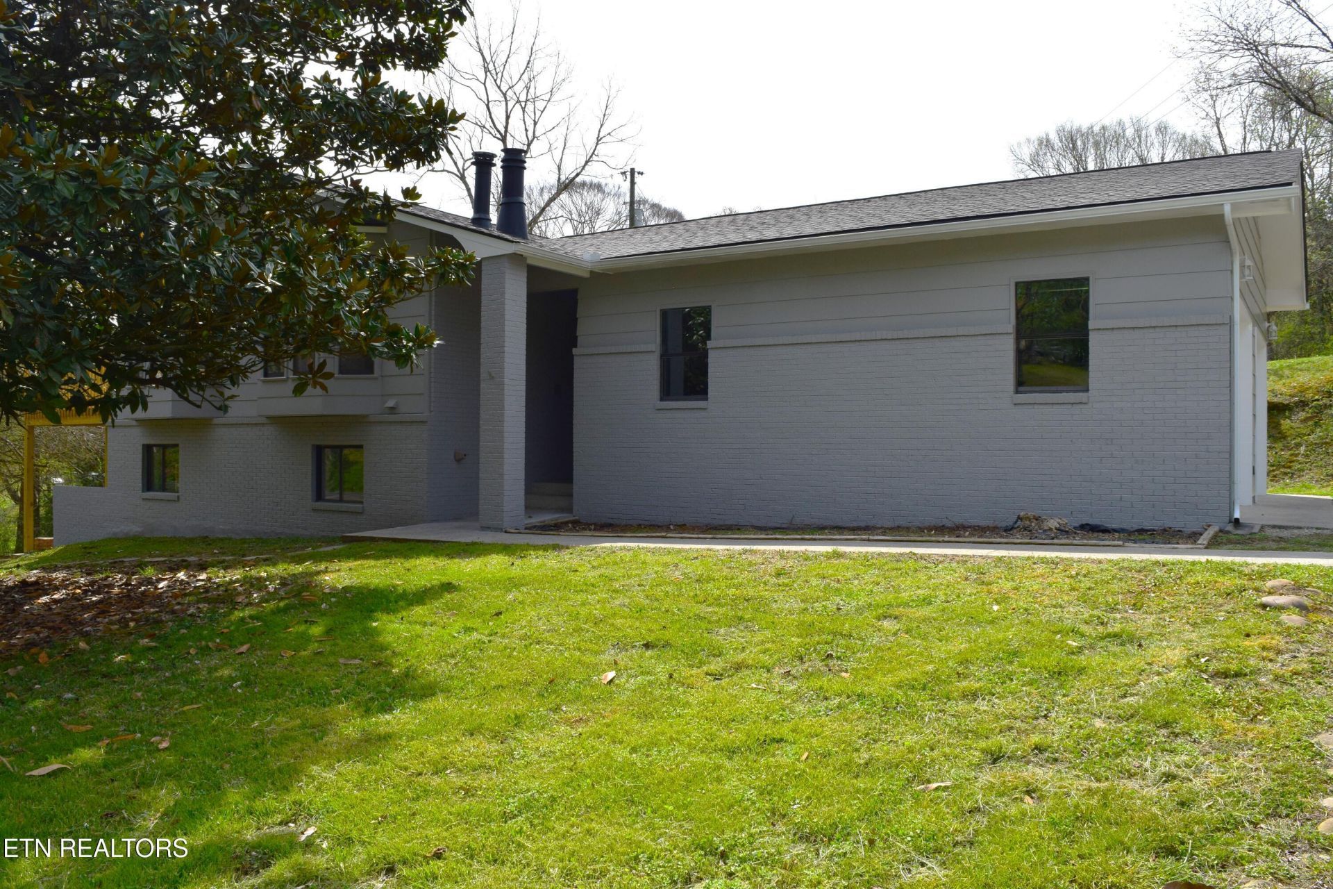 Beautifully renovated 4 Bedroom, 2.5 Bath 2,280 sqft home centrally located with easy access to Clinton, Powell, Knoxville, Oak Ridge. Near the intersections for Edgemoor Road, Pellissippi Parkway, and Clinton Highway. One mile from Bull Run Park and boat ramp. Spacious 700 sqft 2 car garage has enormous storage potential and remote opening door . Numerous windows with bay windows and large, newly built deck overlooking lot. Freshly painted throughout with some updated electrical wiring and plumbing. Expansive yard with large circle driveway.Enter from a covered patio into a gorgeous foyer featuring a large coat closet and entrance to garage. Up a few stairs with brand new carpet you are greeted by the completely renovated kitchen featuring new cabinets, backsplash, tile floors, and appliances. The kitchen opens to a massive newly built deck for all your entertaining needs! The property flows seamlessly into the large living room with lovely LP wood floors, and wood-burning fireplace. Just off the living room is the dining room featuring a stunning new chandelier. From the living room, pass the convenient half bathroom complete with tile and vanity. Then enter the primary suite complete with new light fixture and carpet. The delightful primary bathroom includes new tile floor, light fixtures, vanity, and pristine white tile shower. Located across the hall, the second bedroom has new carpet, light fixture with closet. Downstairs is a wonderfully renovated additional large living space with a beautiful kitchenette/wet bar with wine fridge, open shelves, new cabinets, sink, and convenient wood burning stove nearby. From this area is direct access to the expansive backyard, patio and deck. Fully renovated bathroom with pristine white tile, vanity, and light fixture. Two large carpeted bedrooms with windows and closets. Buyer to verify square footage. Agent/Owner.