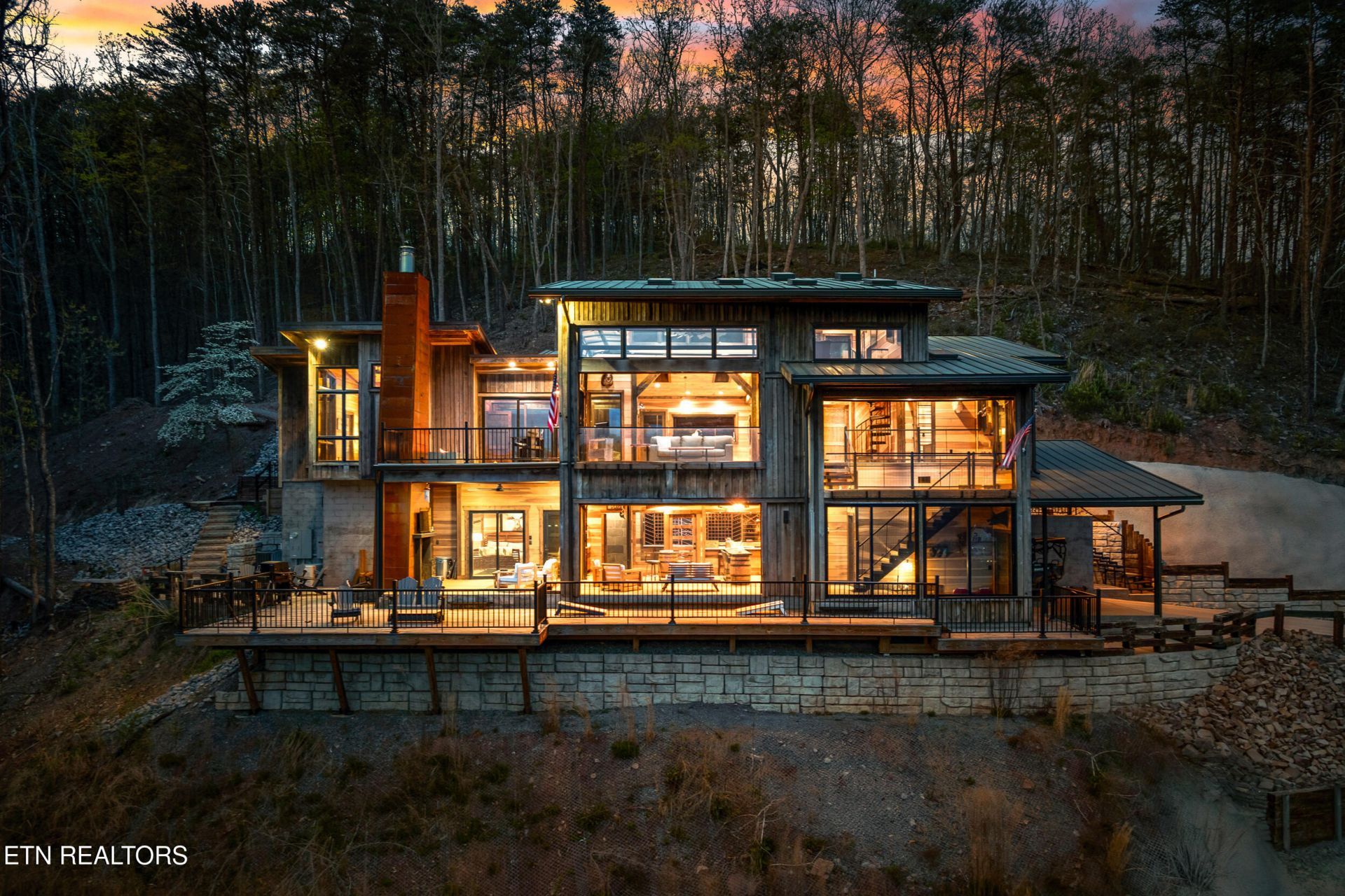 Discover a lakeside sanctuary in Madisonville that redefines the concept of custom craftsmanship. This one-of-a-kind estate is a masterwork of organic architecture, where the soul of the home is literally rooted in the land; much of the timber used in its construction was milled directly on-site. Inside, the aesthetic is a warm symphony of natural wood, featuring expansive White Oak flooring, elegant Poplar wall paneling, and soaring Northern White Pine ceilings. Even the hidden details are elevated, with every closet lined in fragrant Eastern Cedar, ensuring that luxury is felt in every corner of the property.Designed specifically for the ultimate entertainer, the home's layout ensures the incredible lake and mountain views are never out of sight. The heart of the house is a massive gourmet kitchen with high-end finishes that flows seamlessly into the living areas, but the true showstopper is the innovative outdoor living space. The massive Red Oak decks feature a full wet bar and a revolutionary system of automatic windows that can be lowered during cooler months, allowing you to enjoy the fresh air and scenery year-round without sacrificing comfort. Whether you are hosting a tasting in the full-scale wine cellar or relaxing in the versatile loft area, the home feels intimately connected to its environment.The primary suite serves as a private escape, offering direct access to the deck where you can unwind by the outdoor fireplace while the sun sets over the water. From the rare reverse batten board exterior crafted from treated White Oak to the windows that wrap around every room, every inch of this property was designed to celebrate its unique location. This is more than just a party pad; it is a handcrafted retreat that offers a lifestyle of unparalleled beauty and sophistication.